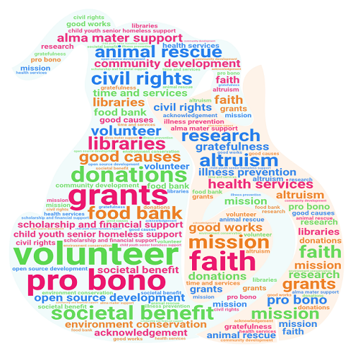 Not only charities and nonprofits but also individual persons and other tax-exempt status organizations can post volunteer needs, record good works, earn ethical points, comment on needs and works, donate online, and have opportunity to get donations by building strong ethical profiles. Volunteers can search and choose volunteering opportunities utilizing flexible time slots and role-matching experience, syncing into personal calendars quickly. Volunteer recruiters can generate repeating volunteer needs at one time, share them with potential applicants, and efficiently manage processes of scheduling, confirmation, communication, automatic good work posting, volunteer rewards and acknowledgement based on time and role.
